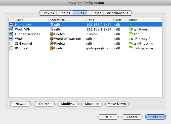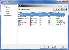 ProxyCap enables you to redirect your computer's network connections through proxy servers. You can tell ProxyCap which applications will connect to the Internet through a proxy and under what circumstances. This is done through a user friendly interface, without the need to reconfigure any of your Internet clients. ProxyCap has native support for the SSH protocol, allowing you to specify a SSH server as the proxy server.