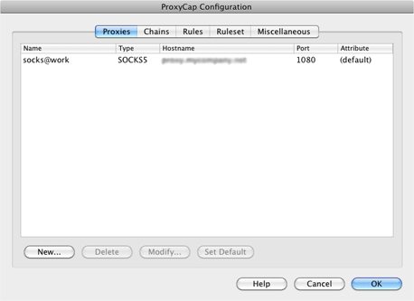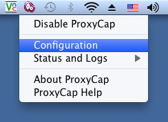 In the system status bar, click the ProxyCap icon and choose Configuration.