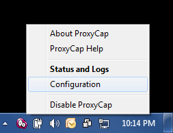 Right click on the ProxyCap taskbar icon and choose Configuration.