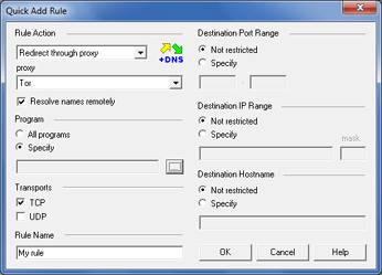 In the Rule Action section, select Tor from the combo box.