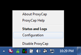 Right click on the ProxyCap taskbar icon and choose Configuration.